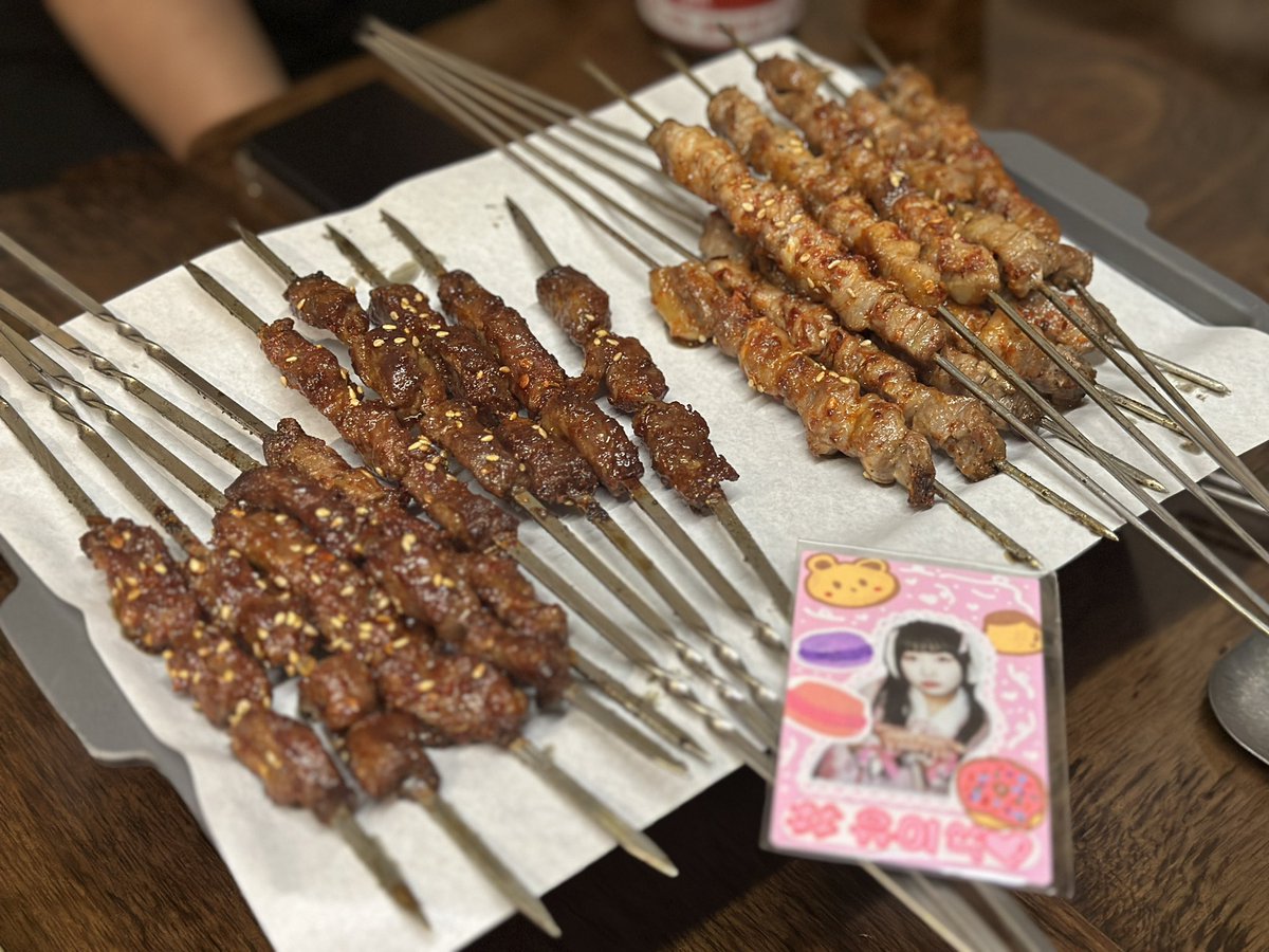 홍대 <숨은꼬치>. 구워져서 서빙되는 양꼬치. 양고기가 당기지만 옷에 냄새가 배는 게 싫다면 고를 수 있는 선택지 중 꽤 윗쪽에 있다고 할 수 있음. 고기도 괜찮고, 만두와 버섯도 이런 종류의 음식에서 기대할 수 있는 정확한 그 지점을 포착한 맛이다. 깔끔한 저녁으로 아주 괜찮아!